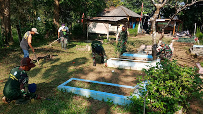 revolusinews.id Karawang - Bangsa yang besar, jiwa yang besar salah satunya adalah menghargai dan menghormati leluhur. Banyak hal yang bisa dilakukan untuk menghormati dan menghargai leluhur. Seperti yang dilakukan Subsektor 01 Sektor 16 satgas Citarum Harum (CH) dengan cara membersihkan dan merapikan taman pemakaman umum (TPU).